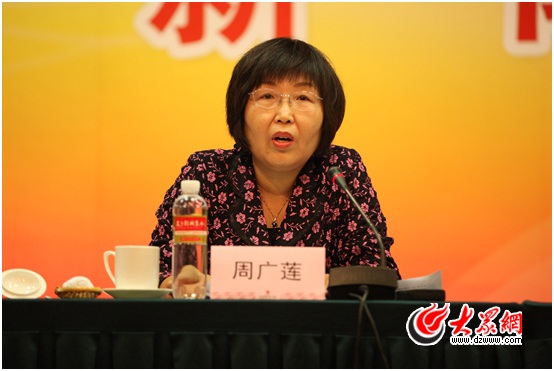文化部公共文化司副司長(zhǎng)周廣蓮介紹“群星獎(jiǎng)”評(píng)選情況。記者 楊春衛(wèi) 攝