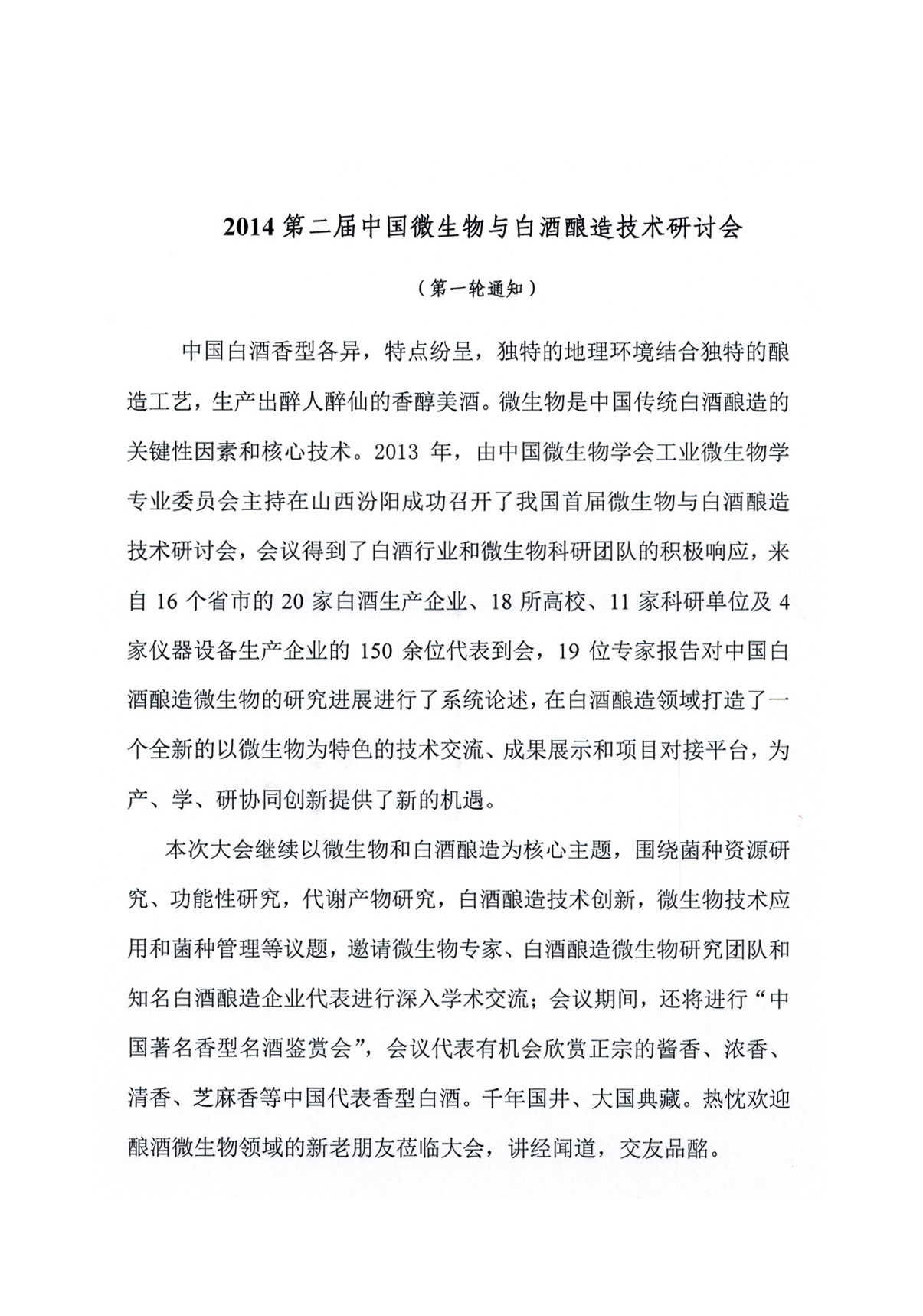 2014第二屆中國微生物與白酒釀造技術(shù)研討會